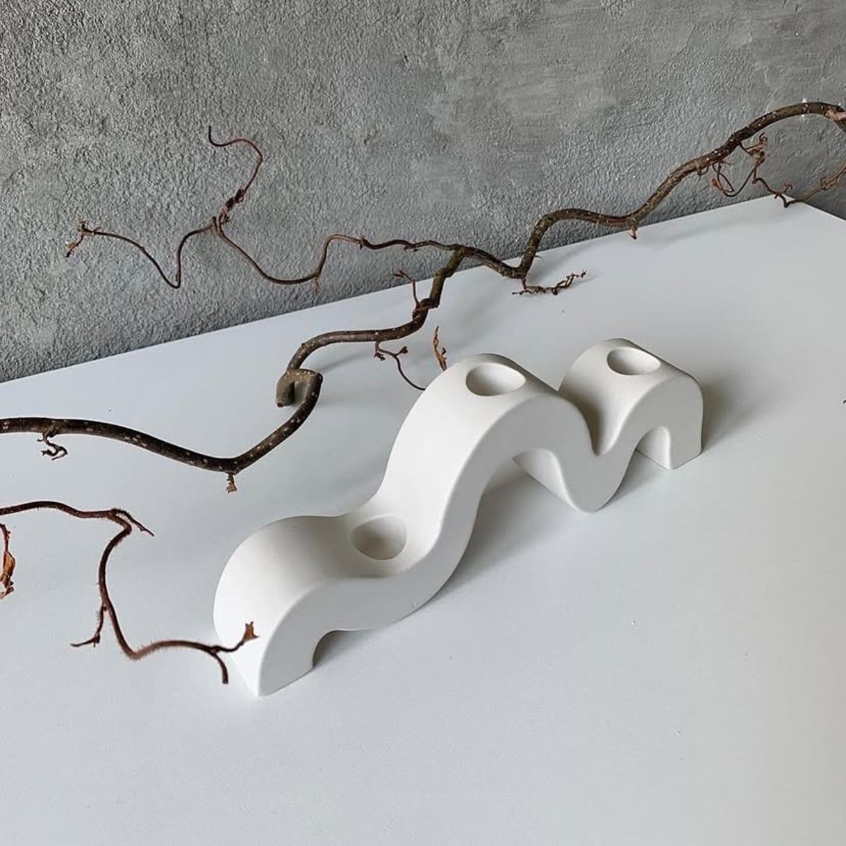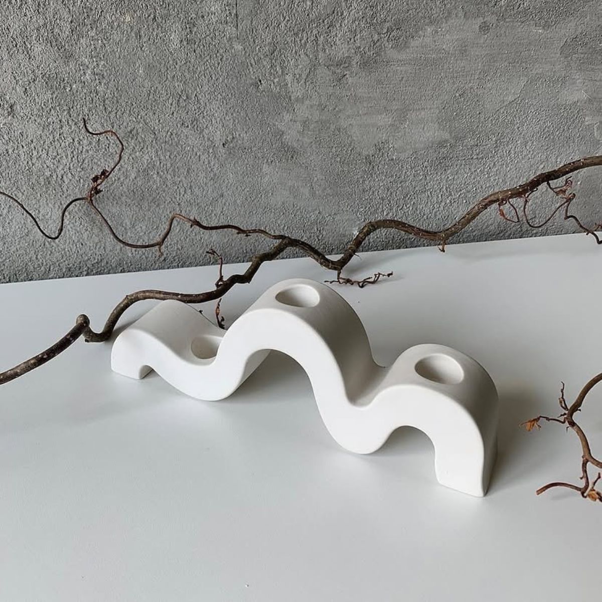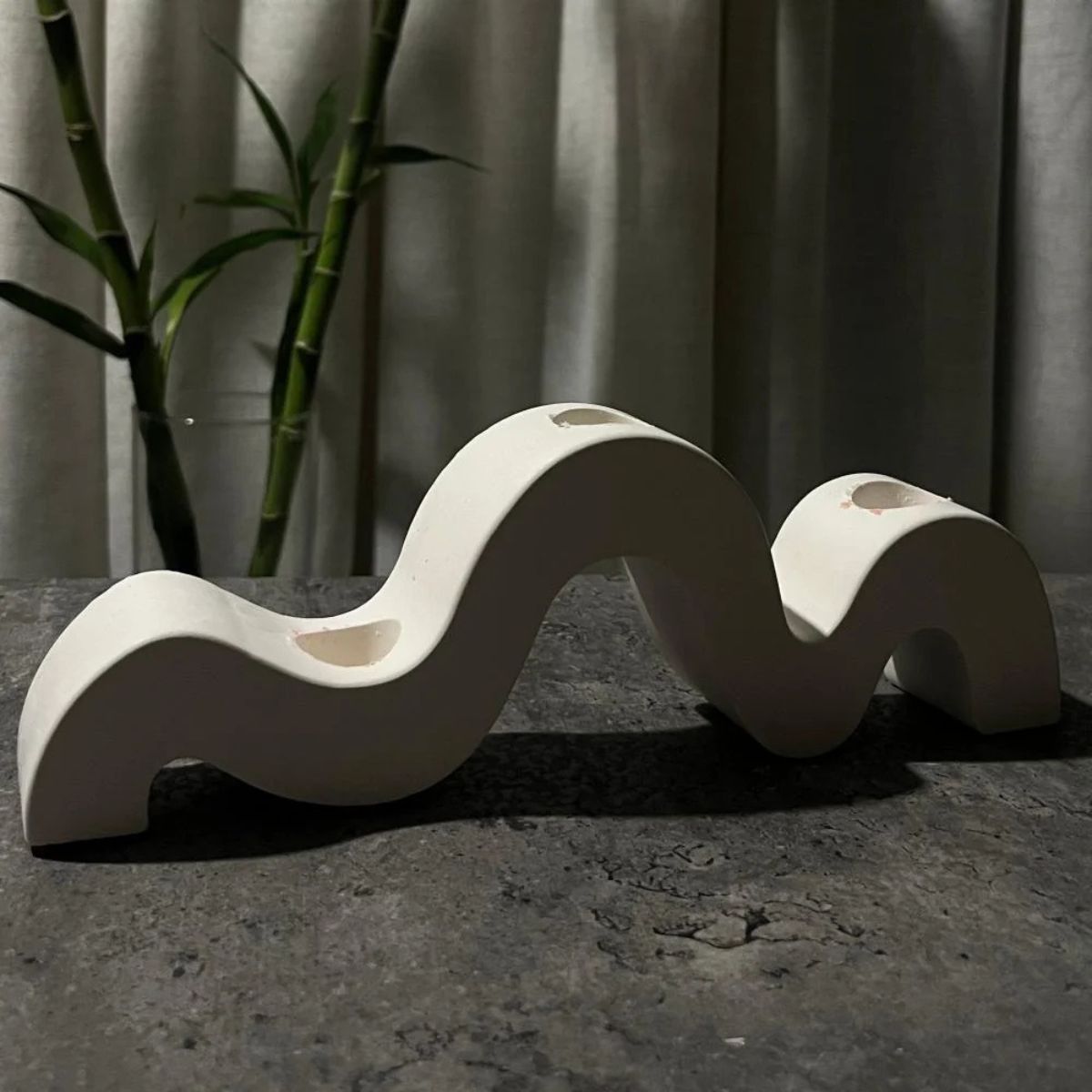 Adaugă un accent de eleganță nordică interiorului tău cu suportul pentru lumânări Nordic Wave, o piesă statement creată manual de artizanii români din ceramică jesmonite de înaltă calitate.