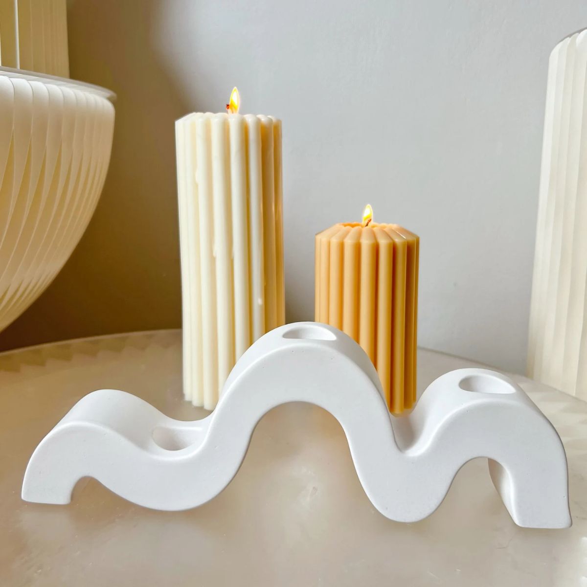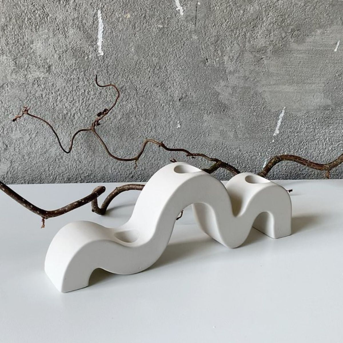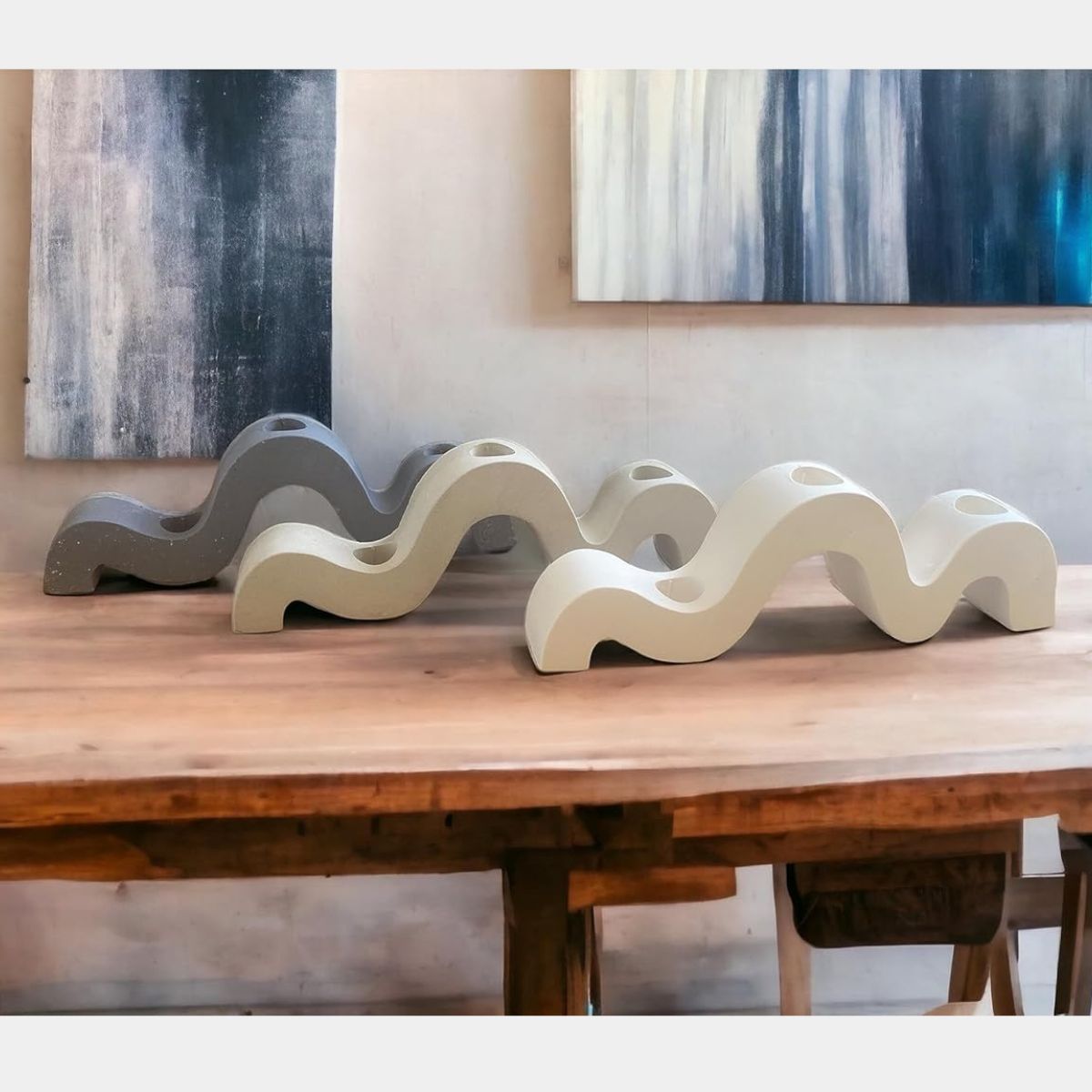 Adaugă un accent de eleganță nordică interiorului tău cu suportul pentru lumânări Nordic Wave, o piesă statement creată manual de artizanii români din ceramică jesmonite de înaltă calitate.